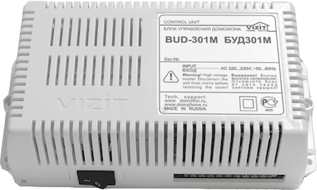 Блок управления для домофона БУД-301М (в дальнейшем - блок управления) используется как составная часть многоквартирных домофонов и видеодомофонов VIZIT (серия 300) и обеспечивает двухстороннюю связь между посетителем и абонентом, а также открывание замка двери подъезда.